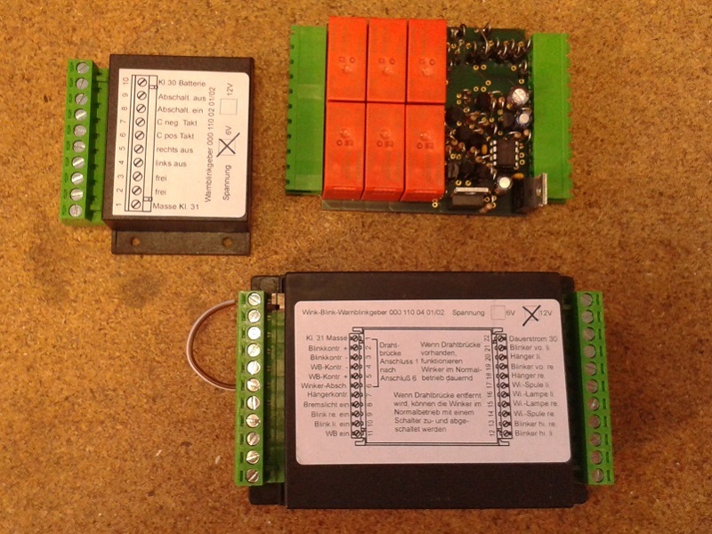 Ob Um- oder Nachrüstung gemäß StVZO *, 6V oder 12V Bordnetz, Plus oder Minus an Fahrzeugmasse, mit Winker und / oder Blinker, mit oder ohne separater Ansteuerung für Anhängerbetrieb, wir haben die passende Blinkeinheit für Sie. Natürlich inklusive Anschlussplan, womit der Einbau auch für Laien kein Problem darstellt.